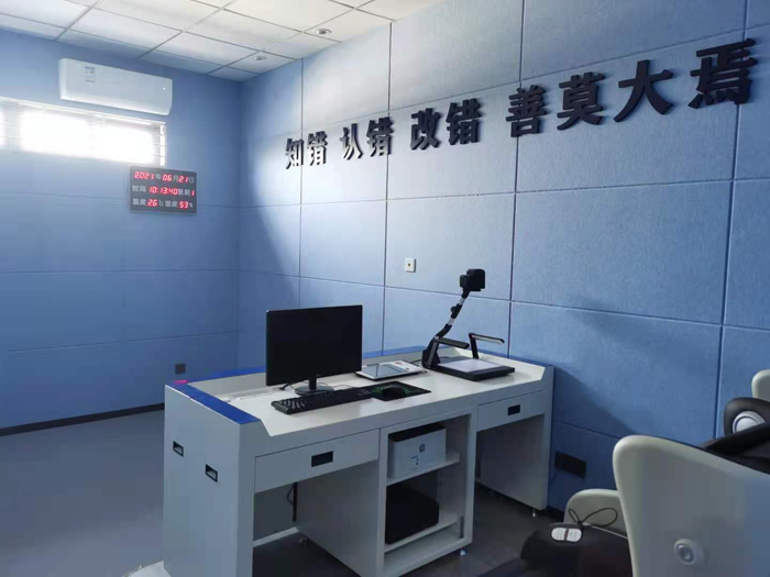 升級改造過程中,開發(fā)公司嚴格按照部、省、市等相關(guān)部門關(guān)于執(zhí)法辦案場所建設(shè)、升級改造及管理使用的要求,規(guī)范升級改造了訊問室、詢問室、辦案區(qū)、接待區(qū),辦案區(qū)設(shè)有訊問室、詢問室、等候室、信息采集室等候室、檢查室、信息采集室、涉案財物管理室以及衛(wèi)生間。各功能室內(nèi)全部安裝隔音防撞防火軟包及監(jiān)控設(shè)備、同步錄音錄像器材,全面消除安全隱患。并在辦案區(qū)及各功能室配有相應(yīng)的門牌標(biāo)識、工作流程和安全管理制度等。