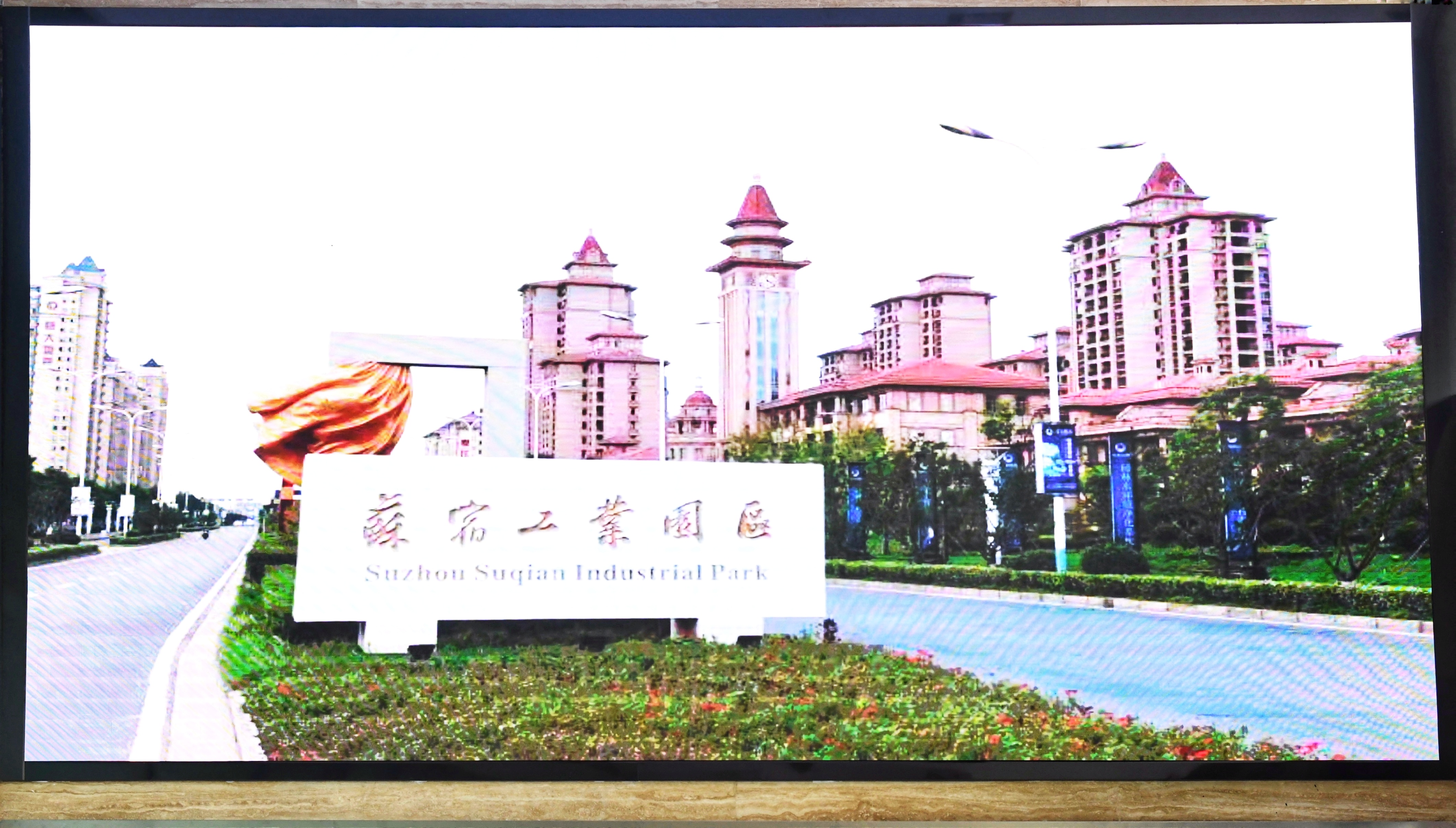 蘇宿管委會(huì)一樓大廳顯示屏約15平方米,像素點(diǎn)間距2mm,設(shè)置于大廳中部的二層挑高位置,是管委會(huì)對(duì)外宣傳的一個(gè)重要窗口,新大屏的投入使用,又將成為宣傳園區(qū)的一個(gè)新的“助推器”。