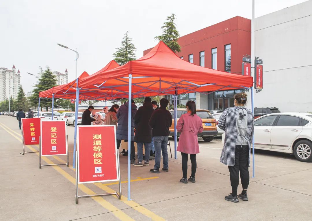 圖為3月21日,工業(yè)坊廠區(qū)各企業(yè)開(kāi)展第二輪核酸抽檢工作,對(duì)保潔、保安、食堂工作人員做到每日一檢,工業(yè)坊各企業(yè)每天抽檢總?cè)藬?shù)的20%,做到一周內(nèi)全員應(yīng)檢盡檢。
