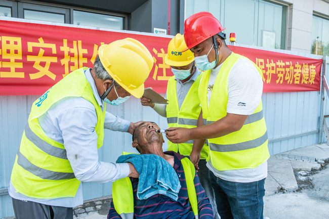 通過此次應(yīng)急演練,現(xiàn)場員工對高溫中暑的自救、互救方法有了更深的認(rèn)識,加強(qiáng)了現(xiàn)場作業(yè)人員應(yīng)對突發(fā)情況的反應(yīng)能力、提高了應(yīng)急救援技能,增強(qiáng)了戶外工人安全防范意識。借助此次應(yīng)急演練機(jī)會,結(jié)合高溫天氣以及實(shí)際情況,各項(xiàng)目部對防暑降溫所需物資進(jìn)行了全面梳理,合理儲備藿香正氣水、人丹、5%碳酸氫鈉等應(yīng)急物資,為安全生產(chǎn)和工人的健康提供了有力保障。