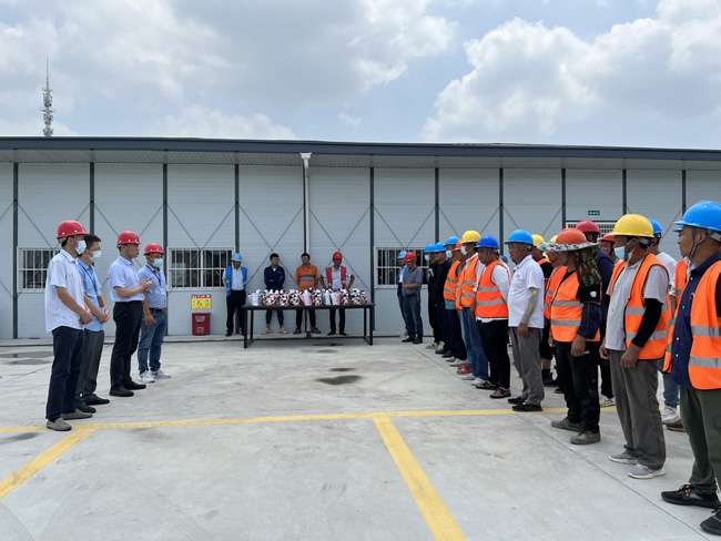 劉建華代表城發(fā)公司向施工一線的工人們傳達敬意與感動,感謝他們?yōu)閳@區(qū)的建設添磚加瓦。在慰問現(xiàn)場,劉建華要求:一是請項目部和工友們思想要高度重視高溫天氣對施工帶來的不利影響,思想上不麻痹,安排好作息時間,合理搭配飲食,提高自我防護能力,做到勞逸結合,確保人身安全。二是要求項目部做好高溫安全生產(chǎn)教育培訓,合理安排作息時間,避免高溫時段施工,落實好防暑降溫措施,充分保障工友們的身心健康。三是要求項目部做好高溫和雷雨大風等極端天氣安全生產(chǎn)應急預案和應急措施,做好施工現(xiàn)場安全生產(chǎn)、文明施工、餐飲衛(wèi)生和消防等隱患排查整改,同時近期周邊爆發(fā)疫情,要求原則上施工現(xiàn)場工友們非必要不離宿,做好個人防護措施。