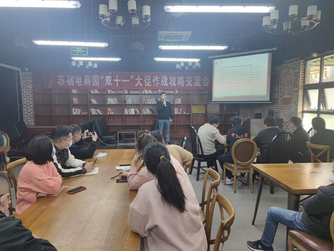 2022年"雙十一"已進(jìn)入倒計(jì)時(shí),蘇宿電商園品牌商家紛紛摩拳擦掌,迎接這一全年最大爆發(fā)場(chǎng)。正值“雙十一”蓄水期,蘇宿電子商務(wù)產(chǎn)業(yè)園提前組織各商家進(jìn)行大促作戰(zhàn)攻略交流會(huì)。