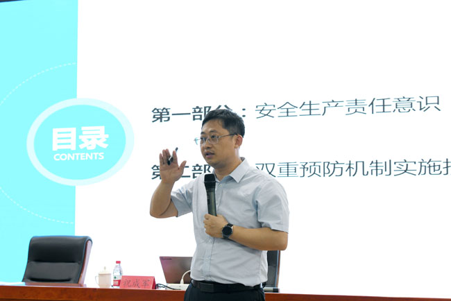 本次培訓邀請國家注冊安全工程師祝成軍進行授課。培訓會上,祝成軍圍繞開展安全生產(chǎn)雙重預防體系建設(shè)工作的意義,相關(guān)法律法規(guī)、標準等內(nèi)容進行了詳細講解,并結(jié)合具體事故案例,對如何理解雙重預防體系、如何劃分作業(yè)單元、如何進行風險辨識與評價等內(nèi)容進行了專門的講解。