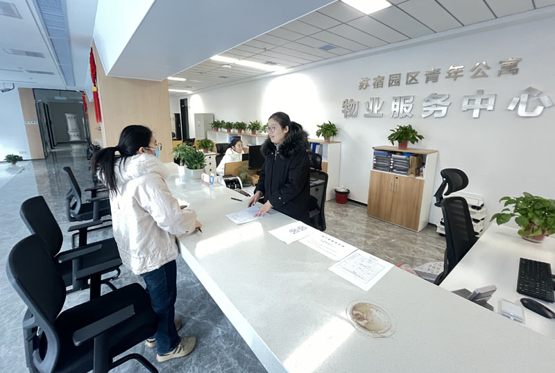 由城發(fā)公司開發(fā)建設(shè)、建發(fā)公司運(yùn)營(yíng)管理的青年公寓項(xiàng)目,位于蘇宿園區(qū)五指山路6號(hào),項(xiàng)目有4棟藍(lán)領(lǐng)公寓、1棟白領(lǐng)公寓,1棟商業(yè)綜合體,建筑面積達(dá)13.7萬(wàn)平米。青年公寓首期推出1棟白領(lǐng)公寓154套房間和1棟商業(yè)綜合體,房間采用高品質(zhì)裝修,配置品牌家具家電、智能門鎖、智能水電表等設(shè)施,同步配套車輛充電、集中熱水供應(yīng)、籃球場(chǎng)、休閑健身廣場(chǎng),滿足了青年多樣化、個(gè)性化需求。