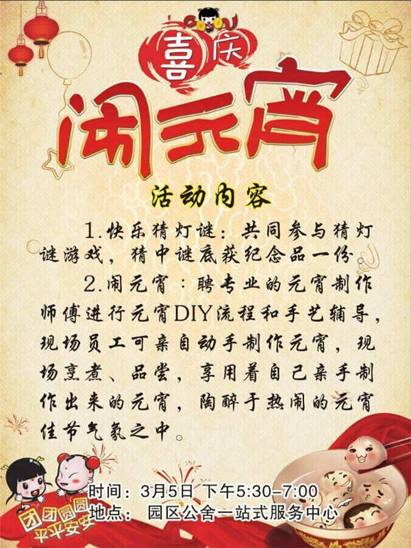 元宵節(jié)期間,園區(qū)公舍、蘇宿明日鄰里中心均為廣大園區(qū)居民奉上了精彩活動,有獎(jiǎng)品多多的“快樂猜燈謎”,還有專業(yè)的元宵DIY現(xiàn)場輔導(dǎo),歡迎園區(qū)居民和工友們前來參加。