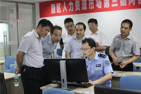 隨后,于堅強一行還參觀了位于園區(qū)人力資源市場的“蘇宿園區(qū)食品安全培訓(xùn)考試中心”,并觀看了在線培訓(xùn)系統(tǒng)的現(xiàn)場演示。