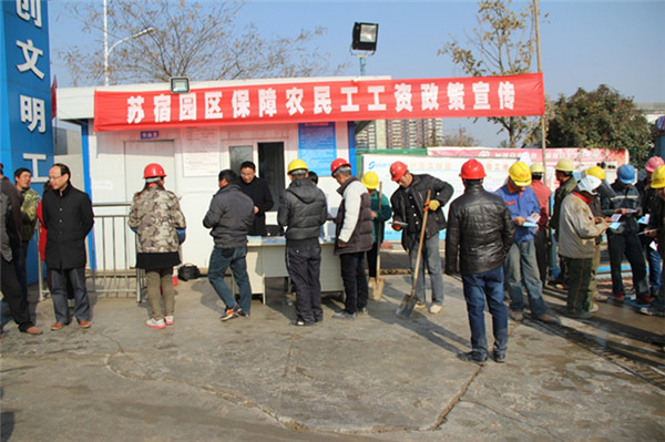 12月2日上午,為提高農(nóng)民工維權(quán)意識,園區(qū)勞動保障和社會事業(yè)局、規(guī)劃建設(shè)局到碧桂園高層區(qū)項目施工現(xiàn)場開展保障農(nóng)民工工資政策宣傳活動?;顒悠陂g,共發(fā)放《教你維權(quán),農(nóng)民工工資案例審編》《信訪手冊》《勞動者維權(quán)實用手冊》等相關(guān)資料200余份,現(xiàn)場接待群眾咨詢200多人次。